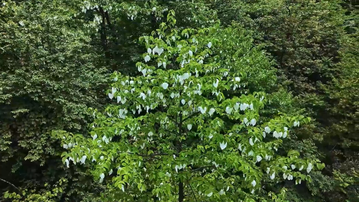 眼下,云南省昭通市大关县珙桐迎来盛花期。在木杆镇金宝山5公里的珙桐岭上,洁白的珙桐花苞片随风摇曳,宛如白鸽群舞山间。